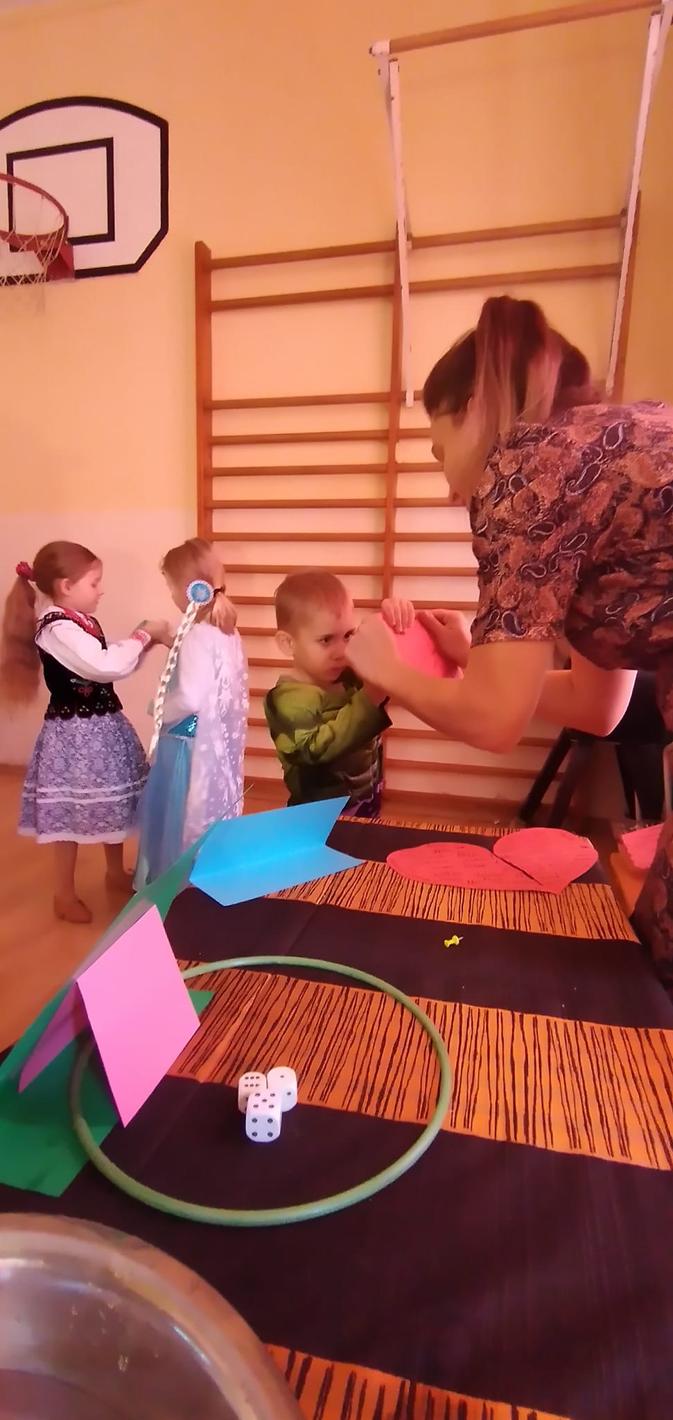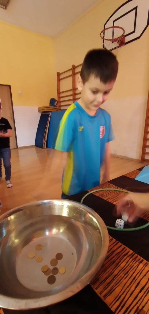 Na sali gimnastycznej panowała magia, a to za sprawą wróżb andrzejkowych. Dzieci, pełne ciekawości i radości, zbierały się w małe grupki, by dowiedzieć się, co przyniesie im przyszłość.