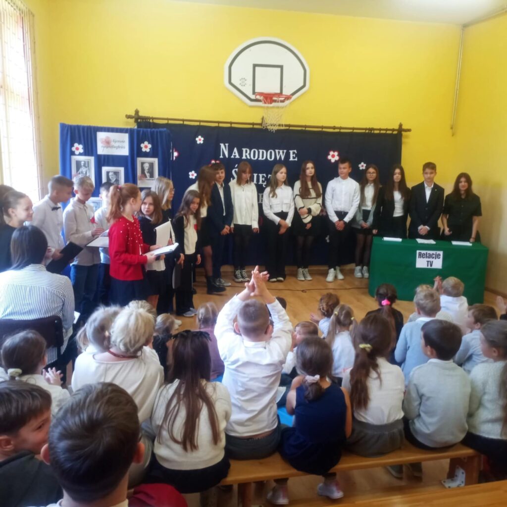 Wyjątkowy wkład w obchody wniosła klasa 7, która przygotowała oryginalne scenki reporterskie. Uczniowie wcielili się w rolę reporterów, którzy przybyli na akademię do naszej szkoły w Niskowej, by relacjonować wydarzenia. W kreatywny sposób przedstawili, jak wygląda akademia z ich perspektywy, jednocześnie podkreślając wagę obchodzonego święta.