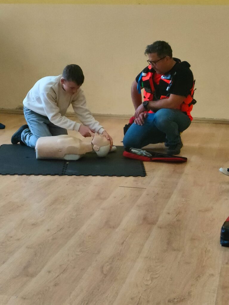 Zrozumienie i umiejętność udzielania pierwszej pomocy to niezbędne kompetencje, które mogą uratować życie. W ramach programu edukacji prozdrowotnej w naszej szkole, uczniowie uczestniczyli w szkoleniu z pierwszej pomocy. Dzięki współpracy z ratownikiem medycznym uczniowie uczyli się, jak reagować w sytuacjach nagłych, jak prawidłowo przeprowadzać resuscytację krążeniowo-oddechową oraz jak wykorzystać defibrylator.