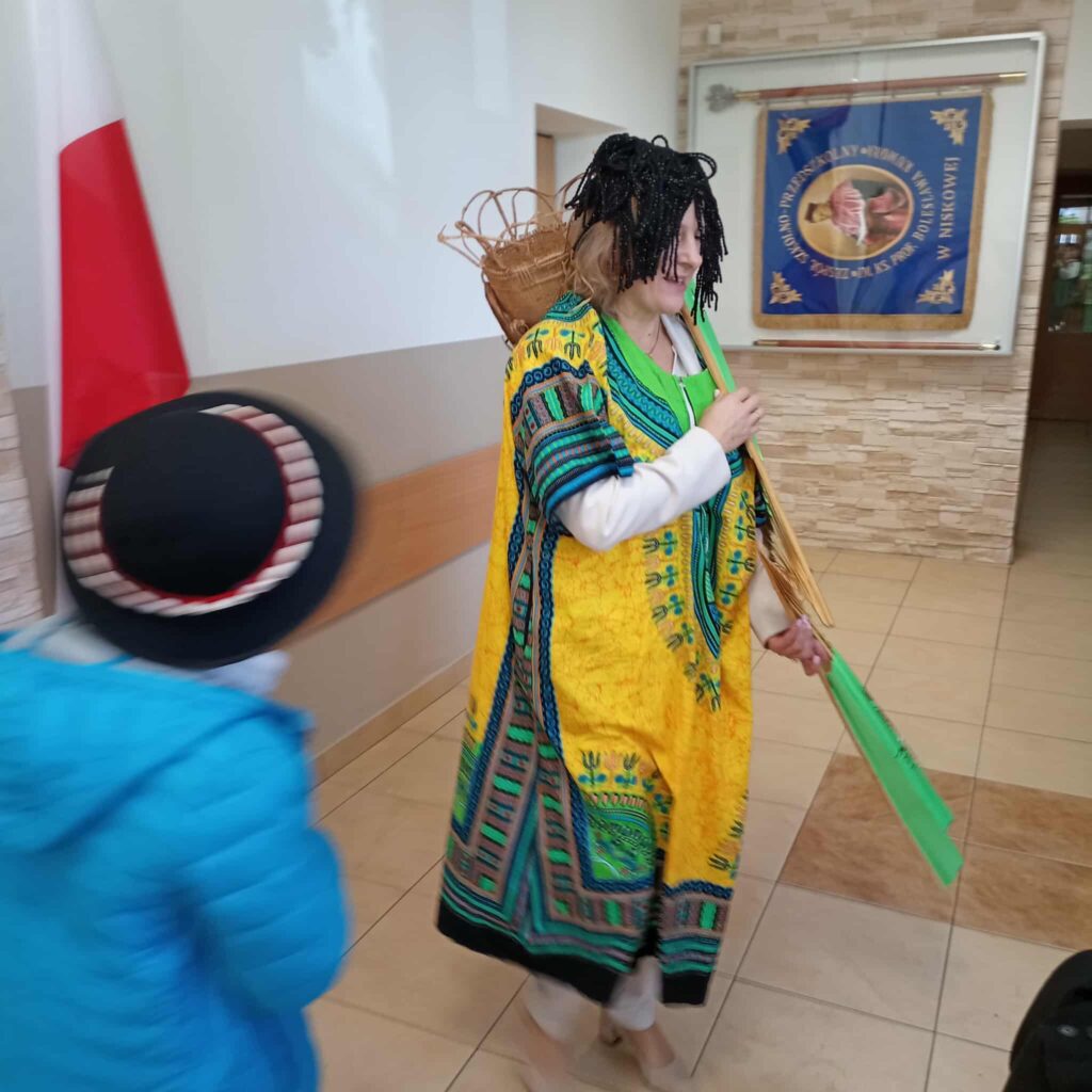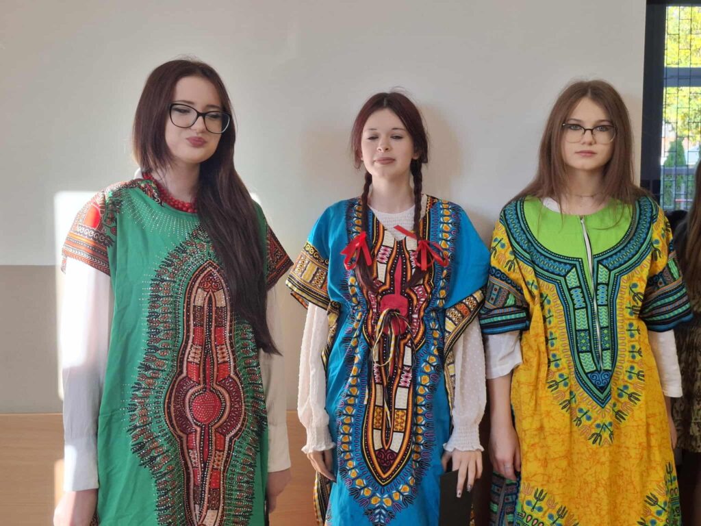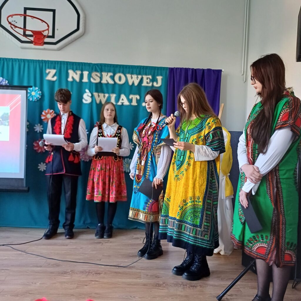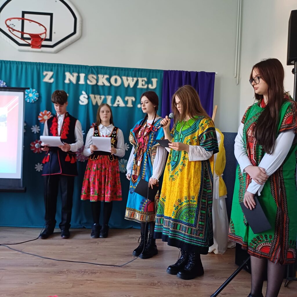 barwne stroje i prezentacje kulturowe, przygotowane przez poszczególne klasy. Następnie na scenie