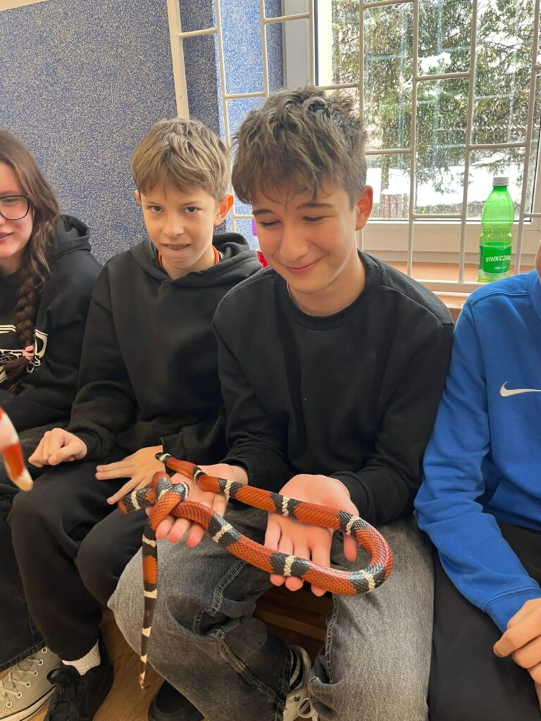 dużym entuzjazmem uczniów. Pokaz zwierząt egzotycznych okazał się wartościowym