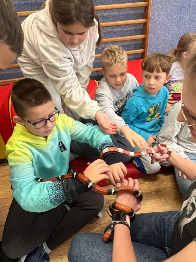 edukacją przyrodniczą. Celem pokazu było przybliżenie uczniom różnorodności świata zwierząt,